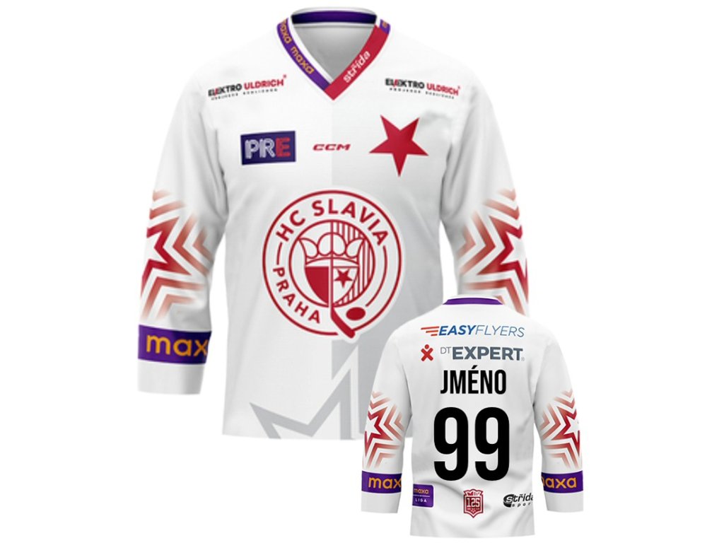 Hokejový dres fan 2025/26 bílý HC Slavia Praha s vlastním jménem a číslem